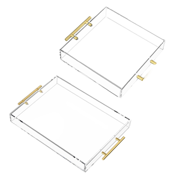 Bandeja de Servicio Acrílica Transparente Personalizada de 12x12 Pulgadas con Laminación Mate, Asas Doradas, Plegable para Café, Baño, Exhibición