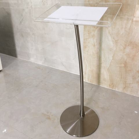 モダンなアクリル製演台、ステンレス製スタンド付き、透明な説教壇、コンサート、教会、ショッピングモール、体育館用