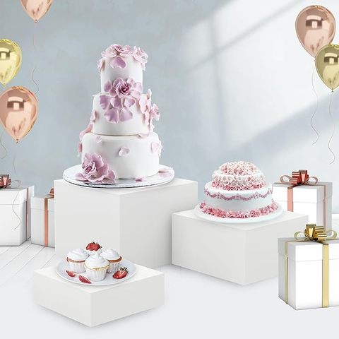 卸売プレミアムクリアアクリルフードディスプレイスタンド5面スクエアホワイトアクリルビュッフェディスプレイライザー結婚式のカフェテリア用